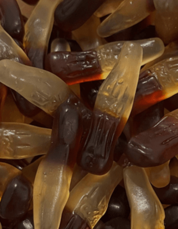 Ingrédients : Sirop de glucose, Sucre, Eau, Amidon modifié de pomme de terre, Gélatine, Acidulants : E330, E296, E270, Arômes, Couleurs, Agent d’émaillage : Huile végétale (Palme), Cire de carnauba, E150c