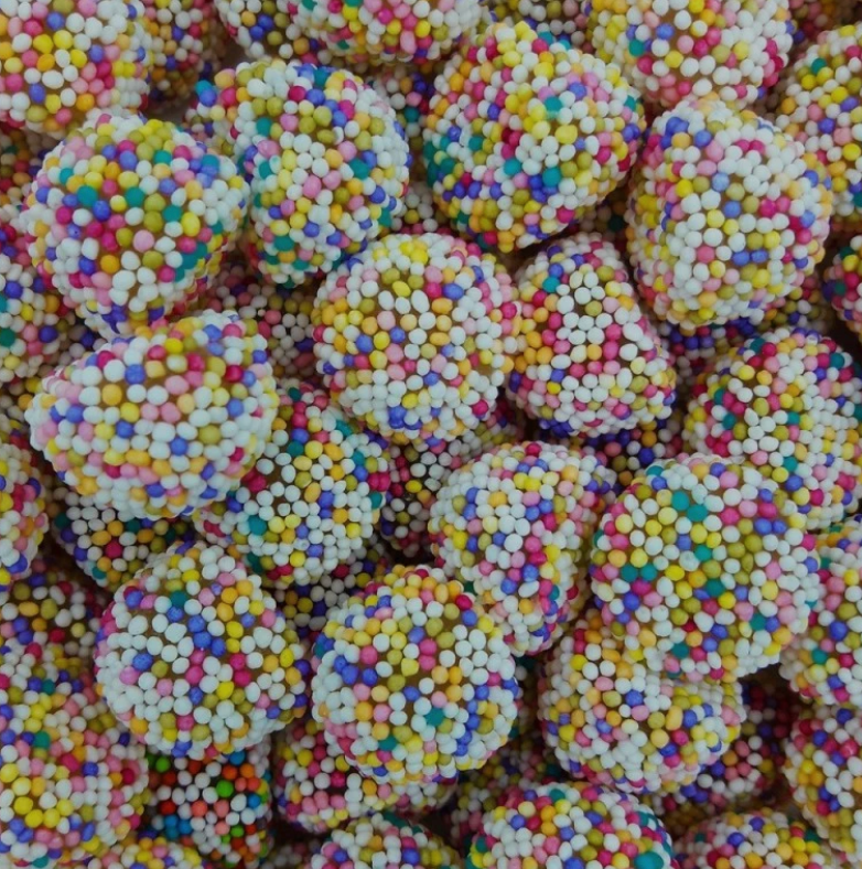 Ingrédients : Confiserie gélifiée aromatisée. Sucre, sirop de glucose, eau, gélatine, acidifiant (E330), gélifiant : pectine, acidifiant (E270), correcteur d'acidité (E325), arômes, amidon de blé (gluten), colorants : E102, E110, E129, E133, E102, E110, E129.