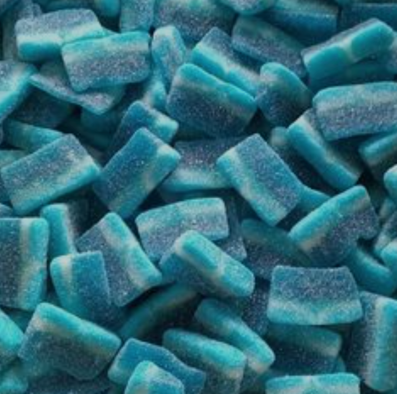 Ingrédients : Sirop de glucose, eau, sucre, amidon, gélatine, acidifiants : acide citrique, arômes, régulateur d'acidité : citrate de sodium, colorants : E133.