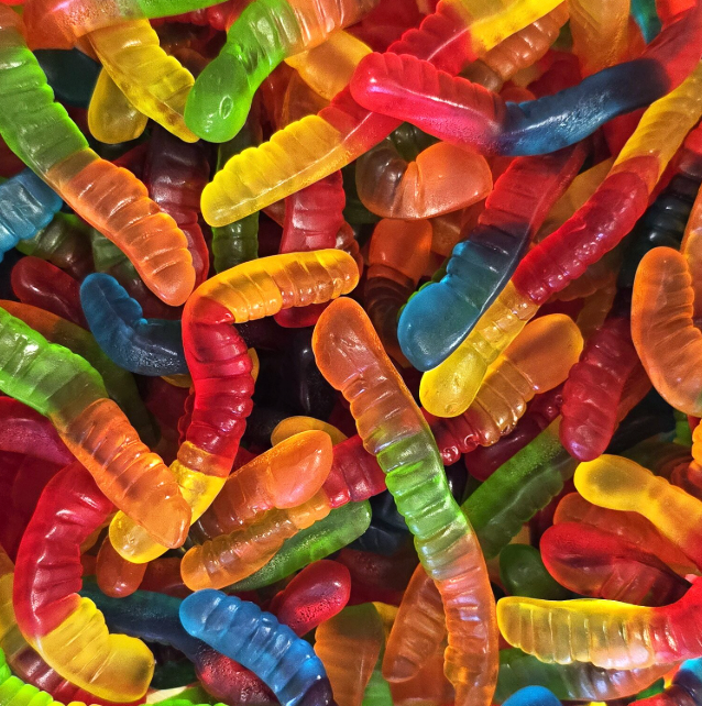 Ingrédients : sirop de glucose, sucre, eau, amidon modifié de pomme de terre, gélatine, acidifiants : E330, E296, E270, arômes, colorants (voir estampille) : E102, E129, E133, agent de glaçage : huile végétale (palme), cire de carnauba. Les colorants E102 et E129 peuvent avoir des effets indésirables sur l’activité et l’attention chez les enfants.